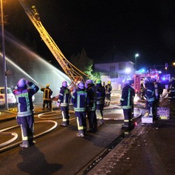 Dachstuhlbrand Wohn- und Geschäftsgebäude in Nierstein / 2 Bewohner über DLK gerettet