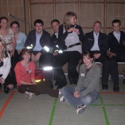 Mit unsrem TSF ausgerüstet trafen hierzu die vier Kameraden, gegen sieben Uhr, an der alten Turnhalle des Gymnasiums ein. Ein Kamerad hatte außerdem seine private Notfalltasche dabei. Was sich dann aber als vermeintlich unnötig herausstellte, da die Planer des Balles den Schuleigenen Sanitätsdienst für die Veranstaltung gewinnen konnten. Diese notfallmedizinisch ausgebildeten Schüler verstanden sich auf anhieb so gut mit unsrer Brandwache, dass sie sich auch gleich zu einem Gruppenfoto, mit den Wehrmännern, sammelten. Leider konnte dieser Dienst nur bis Null Uhr aufrecht erhalten werden und da der Teufel ein Eichhörnchen und das Leben kein Ponyhof ist, verletzte sich ein etwas zu enthusiastischer Tänzer im weiteren Verlauf des Abends. Also, mussten zwei Feuerwehr-Sanitäter doch noch mit eigenem Material Erste Hilfe leisten.