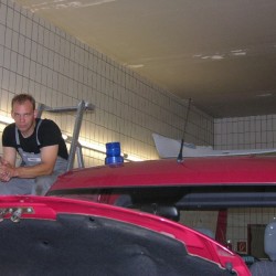Um diese Kennleuchten einbauen zu können, musst aber zuerst Platz im Innenraum geschaffen werden. Alle Verkleidungen und der Himmel wurden also ausgebaut. Da die Elektrohörner im Motorraum eingebaut werden sollten, musste auch der Kühlergrill vorübergehend seinen Platz räumen.
