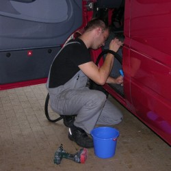 Anschließend suchten die beiden Kameraden die passenden Plätze auf dem Dach und im Motorraum aus und begannen mit der Installation.