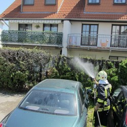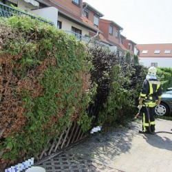 Brand einer Tujahecke / Von anwohnendem Kameraden vor Ankunft eingedämmt / Nachlöscharbeit