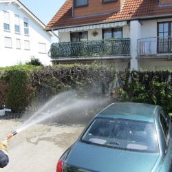 Als das Tanklöschfahrzeug dann an der E-Stelle eintraf stand da schon ein Kamerad, der in der Nähe wohnt, mit einem Gartenschlauch bewaffnet. Ein Hecke Tujas hatte Feuer gefangen. Offenbar hatte jemand probiert mit einem Brenner Unkraut abzuflammen und die Hecken hatte dadurch Feuer gefangen. Mit dem Schnellangriff löschte der Angriffstrupp dann die Reste noch ab, dann konnten die Feuerwehrmänner schon wieder in die Wache einrücken.