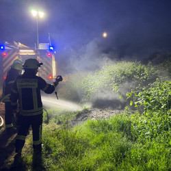 Innerhalb von zwei Tagen wurde die Feuerwehr zum 4. Einsatz alarmiert. Dieses Mal zu einem brennenden Gebüsch im Oppenheimer Unterfeld. Eine Brombeerhecke hatte Feuer gefangen und konnte aber schnell mit einem C-Röhr abgelöscht werden. Anschl. wurde die Vegetation von den 14 Einsatzkräften, die mit dem ELW, TLF und HLF ausgerückt waren, noch ordentlich bewässert um Folgebrände zu vermeiden.