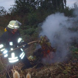 In Wirklichkeit war der Grund für die Alarmierung der Nachtschleife ein kleines Feuer von illegal entsorgtem Unrat und Grünabfällen, das mit dem Schnellangriff des Oppenheim 23 schnell in den Griff bekommen werden konnte. Hierbei ist, fast vollkommen unbemerkt von der Weltöffentlichkeit, eine Rarität aufgetreten, auf deren Neuauflage sicher weitere sieben Jahre gewartet werden darf. Ein Strahlrohrführer mit dem keiner gerechnet hatte. Dieser spezielle Gruppenführer mit einem Strahlrohr in der Hand, das ist seltener als ein vierblättriges Kleeblatt auf einer Wiese, von der Größe von zwei Fußballfeldern.