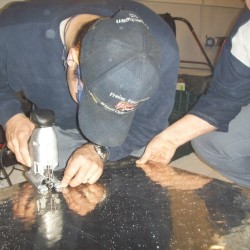 Währenddessen wurden auch noch die letzten Verkleidungen ausgeschnitten und die Metalltrittstufen bekamen ihre letzten beiden Lackschichten.
