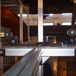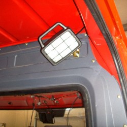 Während der Woche wurden wieder einmal viele kleine, unauffällige aber sehr wichtige Arbeiten am Geräteraum des Hochwasserwagens getätigt. Unter anderem wurden die hinteren Anschlagpuffer der Materialkörbe eingepasst. Weiterhin wurde ein Scheinwerfer über die seitliche Schiebetür eingebaut, der den Bereich vor der Tür selbst ausleuchten soll.