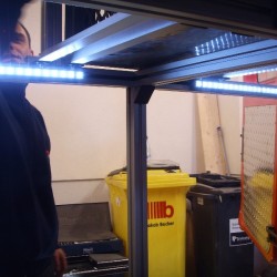 Im hinteren Geräteraum wurden ebenfalls zwei LED-Schienen an das Regalsystem angebaut. Diese Schienen sollen später den Raum vor und über den Notstromaggregaten ausleuchten.