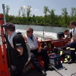 Erster Test des Echolots im Betrieb auf dem Mehrzweckboot