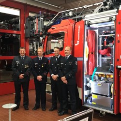 Am Freitag besuchte eine Abordnung aus Oppenheim unsere Freunde der Feuerwehr Titisee-Neustadt. Die Neustädter Kameraden hatten allen Grund zur Freude, wurden ihnen doch an diesem Abend gleich zwei neue Fahrzeuge übergeben! Neben einem neuen Mannschaftstransportfahrzeug auf VW T6 Allrad, war das Highlight des Abends sicherlich die Übergabe der neuen Drehleiter. Die imposant auftretende DLK 23/12 des Ausbauers Rosenbauer auf Mercedes-Atego-Fahrgestell, verfügt unter anderem über einen 5-Mann-Korb und viele weitere Highlights.