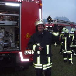 Zu einem Gartenhausbrand im Oppenheimer Unterfeld wurden die Männer der Nacht-Schleife kurz nach acht Uhr an diesem Montag alarmiert. Die Rauchsäule stand schon, weit sichtbar, über dem Oppenheimer Gewerbegebiet, was auf einen größeren Brand schließen ließ.