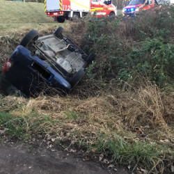 OPPENHEIM - Um 17 Uhr wurde die Feuerwehr zu einer Hilfeleistung alarmiert. In der Nähe des Flugplatzes war der Fahrer eines PKW bei einem Wendemanöver vom befestigten Weg abgekommen, in einen Graben gerutscht und auf dem Dach zum Liegen gekommen. Bei Eintreffen der Feuerwehr hatten sich bereits alle drei Insassen aus dem Fahrzeug befreit. Da von dem PKW keine unmittelbare Gefahr ausging, sicherte die Feuerwehr die Unfallstelle ab und übernahm die Betreuung der Insassen bis zum Eintreffen des Rettungsdienstes. Anschließend wurde der PKW durch einen Abschleppdienst geborgen.