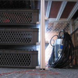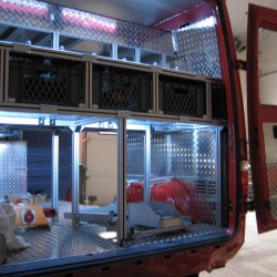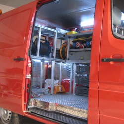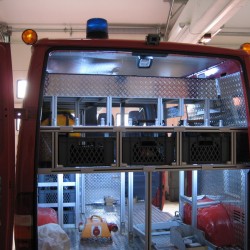 Auch an diesem Samstag ruhte die Baustelle "Gerätewagen" wieder einmal nicht. Arno und Michael kümmerten sich an diesem Tag um die Fertigstellung der Geräteraumbeleuchtung, was die LED-Innenbeleuchtung und die Umfeldbeleuchtung einschließt.