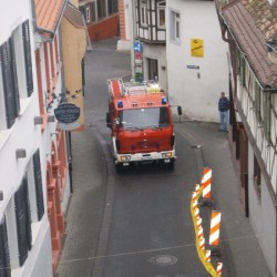 An diesem Montagnachmittag wurden die Männer der Oppenheimer Gesamtschleife in die Altstadt Oppenheims gerufen. Ein Kamin sprühte Funken und Flammen in den frühabendlichen Himmel.