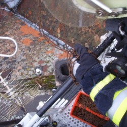 Da der Kamin noch auf der Höhe des unzugänglichen Dachbodens einen Knick in seinem Verlauf aufwies, konnte die Feuerwehr die Reinigung nicht komplett durchführen. Aus diesem Grund gab der Einsatzleiter den Kamin nicht vor der Konsultierung eines Schornsteinfegers, durch den Eigentümer, frei.