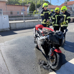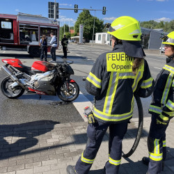 Zu einem brennenden Motorrad ging es an diesem Tag in die Nähe des Bahnhofes. Ein Anwohner konnte den Brand mit einem Feuerlöscher eindämmen. Eine Besatzung des LF 8/6, welche sich in unmittelbarer Nähe am Oppenheimer Hafen befand, führte Nachlöscharbeiten durch. Mit dem Einsatzleitwagen wurde zur abschließenden Kontrolle eine Wärmebildkamera zugebracht. Die Brandursache ist unklar, es wurden keine Personen verletzt.