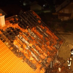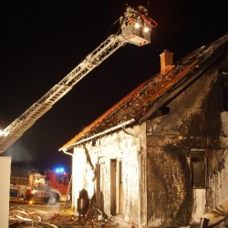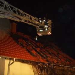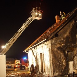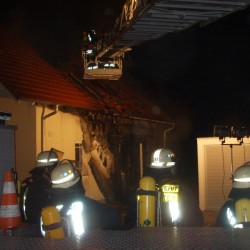 Durch eine, noch ungeklärte Ursache entstand frühmorgens ein Feuer. Die Bewohner wurden wach und konnten fliehen. In kürzester Zeit brannte der Dachstuhl und die Wärmedämmung des Gebäudes. Der nagelneue, vor dem Haus geparkte Wagen trug schwere Brandschäden davon. Als der Besitzer die Gefahr erkannte, fuhr er ihn Geistesgegenwärtig vom Haus weg.