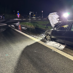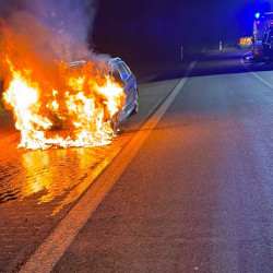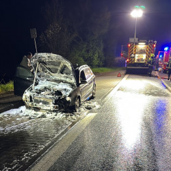 Oppenheim/DIENHEIM - Gegen 23 Uhr wurden die Feuerwehren Oppenheim und Dienheim zu einem brennenden PKW auf der Kreisstraße K40 alarmiert. Bei Eintreffen der ersten Kräfte brannte der Vorderwagen des PKW bereits ausgedehnt. Personen befanden sich nicht in Gefahr. Nachdem der Brand zunächst mit Wasser gelöscht werden konnte, wurden Nachlöscharbeiten mit Schaum durchgeführt. Für die Dauer der Löscharbeiten musste die Straße voll gesperrt werden. Die Brandursache war bei Einsatzende noch unklar.