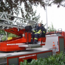 Nachdem allen Anwesenden klar war, dass es sich bei dem Großaufgebot um eine Übung und keinen Ernstfall handelte, kippte die Stimmung in helle Begeisterung. Kaum war das Rohr und die Leiter zurückgenommen, gab es für die Alphabetschützen kein Halten mehr. Jedes Fahrzeug wurde bis ins kleinste Detail unter die Lupe genommen, manche Fahrzeugelemente sogar bis zu den Belastungsgrenzen geprüft. Blickfang hierbei war natürlich das neue TSF-W der Selzener Kameraden, sowie die Drehleiter.