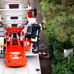 An diesem Mittwochmorgen fuhren drei Kameraden der Oppenheimer Wehr mit der Drehleiter nach Hahnheim.