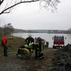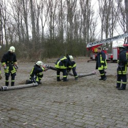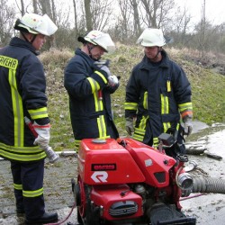 Die Mannschaften des TLFs und der TSFs nahmen einmal wieder die Wasserentnahme aus dem offenen Gewässer vor. Manche prüften die Kettensägen. Ein junger Kamerad, der über 18 Jahre alt ist und den Atemschutzlehrgang vor kurzem erfolgreich absolviert hatte, wurde in die Steuerung des Drehleiterkorbes eingewiesen.