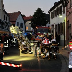An diesem Samstag wurden die Männer der Oppenheimer DLK-Schleife nach Dolgesheim in die Nachbarverbandsgemeinde Guntersblum gerufen. Hier sollten die Männer de3n Rettungsdienst aus dem Bereich Alzey unterstützen. Die Kräfte des DRKs hatten einen Patienten versorgt wussten aber, dass sie diesen nicht über den Treppenraum aus dem Gebäude würden schaffen können. Auch die Floriansjünger aus Oppenheim und Guntersblum wussten über die baulichen Umstände bescheid. Sie waren schon einmal zur gleichen Adresse gerufen worden. Da sich die medizinischen Umstände aber geändert hatten, forderten die Rotkreuzler eine Wannentrage, an Stelle der üblichen Fahrtrage an. Die Oppenheimer Drehleiter führt eine solche Spezialtrage genau für diese Fälle mit und so konnte der Patient nach kurzer Zeit aus der Wohnung gebracht und dem Rettungsdienst übergeben werden. Auch in diesem Fall hatte die Zusammenarbeit alle Hilfskräfte einmal mehr hervorragend funktioniert, folglich konnten alle Kräfte nach einer halben Einsatzstunde wieder in die Gerätehäuser und Wachen einrücken.