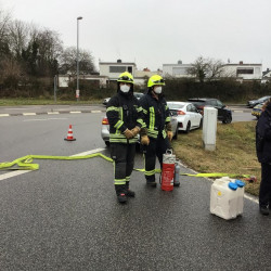 OPPENHEIM - Um kurz nach 14 Uhr wurde die Feuerwehr zu einem Verkehrsunfall alarmiert. Ein PKW-Fahrer, der die Bundesstraße 9 in Fahrtrichtung Worms befuhr, hatte in der Ausfahrt in Richtung Altstadt beim Abbiegen die Kontrolle über sein Fahrzeug verloren und war gegen eine Lärmschutzwand geprallt. Hierbei wurden der PKW, die Lärmschutzwand, sowie ein Verkehrsschild beschädigt. Die beiden Fahrzeuginsassen wurden bis zum Eintreffen des Rettungsdienstes durch die Feuerwehr betreut. Des weiteren sicherten die Besatzungen von HLF und Löschgruppenfahrzeug die Einsatzstelle ab, stellte den Brandschutz sicher und nahmen auslaufende Betriebsmittel auf. Die Polizei Oppenheim war ebenfalls zur Unfallaufnahme vor Ort.