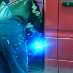 Durch den Gebrauch als Transportfahrzeug für eine Handwerksfirma, hat der Lack im Laderaum an einigen Stellen stark gelitten. Um Rost möglichst gut vorzubeugen, wollten die Kameraden die Stellen mit Hammerit streichen. Hierzu musste die Wehrmänner die Flächen aber erst noch vorbereiten. Der alte Lack musste, mit einer Schruppscheibe und Schleifpapier, angeraut werden.