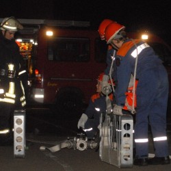 Nach einer kurzen Erkundung gab der Gruppenführer seinen Kräften, die sich schon hinter dem Fahrzeug aufgestellt hatten, die entsprechenden Befehle. Dann folgte eine nahezu perfekte Übung nach der Feuerwehrdienstvorschrift 3.