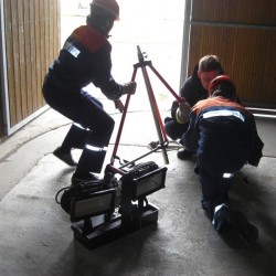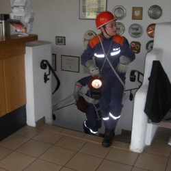Schnell wurden Schläuche ausgerollt, Scheinwerfer aufgebaut und die Übungspuppen gerettet, so konnte die Lage in windeseile unter Kontrolle gebracht werden.